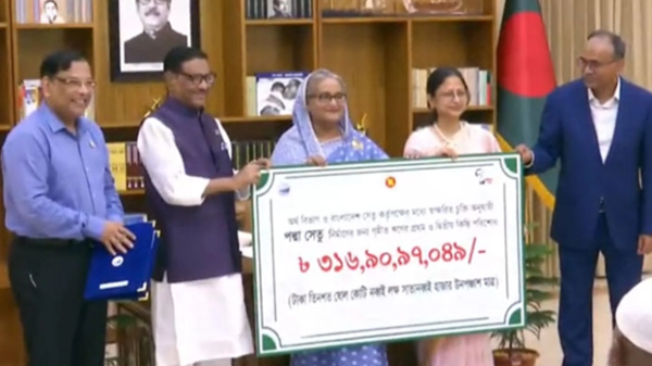 পদ্মা সেতুর ঋণের প্রথম ও দ্বিতীয় কিস্তি হিসেবে ৩১৬ কোটি ৯০ লাখ ৯৭ হাজার ৪৯ টাকা সরকারকে পরিশোধ করল সেতু কর্তৃপক্ষ। বুধবার (৫ এপ্রিল) গণভবনে প্রধানমন্ত্রী শেখ হাসিনার কাছে এই