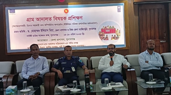 সুনামগঞ্জে ৪দিন ব্যাপী গ্রাম আদালত প্রশিক্ষণ উদ্বোধন করা হয়েছে। মঙ্গলবার(১৫ এপ্রিল) সকালে সুনামগঞ্জ সার্কিট হাউজ মিলনায়তনে এ প্রশিক্ষণের উদ্বোধন করেন জেলা প্রশাসক ড. মোহাম্মদ উলিয়াস মিয়া। সুনামগঞ্জ স্থানীয় সরকার বিভাগের