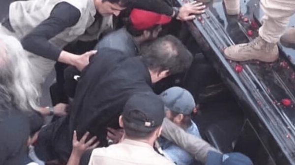 সরকারবিরোধী লংমার্চ চলাকালীন গুলিবিদ্ধ হয়ে হাসপাতালে ভর্তি হয়েছেন পাকিস্তান তেহরিক-ই-ইনসাফের (পিটিআই) প্রধান ইমরান খান। ডন জানিয়েছে, বৃহস্পতিবার পাঞ্জাব প্রদেশের ওয়াজিরাবাদের আল্লাহ হো চকের কাছে ইমরান খানের কন্টেইনারে গুলি চালায় অজ্ঞাত