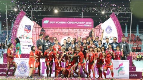 নারী সাফ চ্যাম্পিয়নশিপে নতুন ইতিহাস গড়ল বাংলাদেশ। নেপালকে হারিয়ে প্রথমবারের মতো সাফ চ্যাম্পিয়ন হয়েছে লাল সবুজের প্রতিনিধিরা। এর আগে ২০১৬ সালে শিরোপার খুব কাছে গিয়েও স্বপ্নভঙ্গ হয় সাবিনাদের। তবে এবার