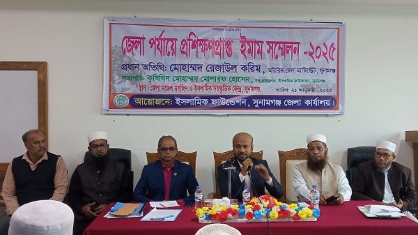 সুনামগঞ্জে প্রশিক্ষণপ্রাপ্ত ইমামদের সম্মেলন অনুষ্ঠিত হয়েছে। মঙ্গলবার(২১ জানুয়ারি) বেলা সাড়ে ১১টায় জেলা মডেল মসজিদের ইসলামিক সাংস্কৃতিক কেন্দ্রে সুনামগঞ্জ ইসলামিক ফাউন্ডেশনের উদ্যোগে এ সম্মেলন অনুষ্ঠিত হয়। সুনামগঞ্জ ইসলামিক ফাউন্ডেশনের উপপরিচালক কৃষিবিদ