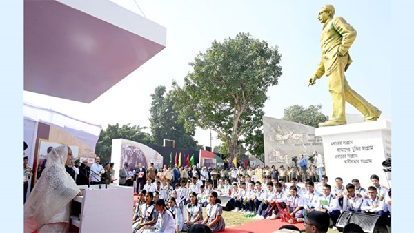 জাতির পিতা বঙ্গবন্ধু শেখ মুজিবুর রহমানের ভাস্কর্য ঘিরে ‘মৃত্যুঞ্জয়ী প্রাঙ্গণ’ উদ্বোধন করে প্রধানমন্ত্রী শেখ হাসিনা বলেছেন, জাতির পিতার এই ভাস্কর্য নিছক একটি ভাস্কর্য নয়। এটি একটি ইতিহাস। এটি আমাদের দেশকে