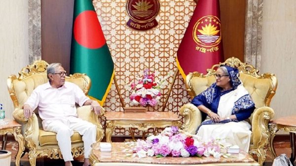 রাষ্ট্রপতি মো. আবদুল হামিদের সঙ্গে সৌজন্য সাক্ষাৎ করেছেন প্রধানমন্ত্রী শেখ হাসিনা। রোববার (১৬ এপ্রিল) সন্ধ্যায় বঙ্গভবনে এসে পৌঁছালে রাষ্ট্রপতি ফুল দিয়ে প্রধানমন্ত্রীকে স্বাগত জানান। রাষ্ট্রপতির প্রেস সচিব মো. জয়নাল আবেদীন