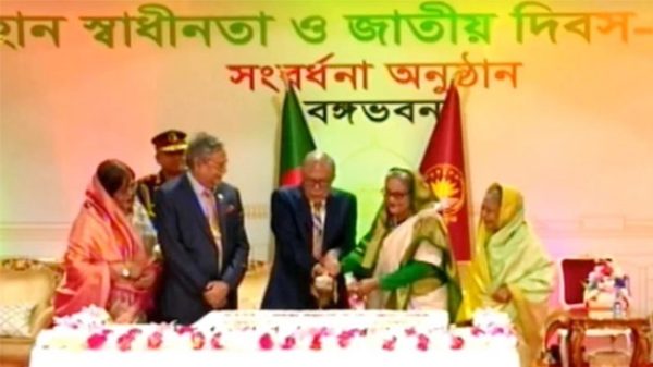 মহান স্বাধীনতা ও জাতীয় দিবস উদযাপন উপলক্ষ্যে কেক কেটেছেন রাষ্ট্রপতি মো. আবদুল হামিদ ও প্রধানমন্ত্রী শেখ হাসিনা। রোববার (২৬ মার্চ) বিকেলে বঙ্গভবনে মহান স্বাধীনতা ও জাতীয় দিবস উদযাপন উপলক্ষ্যে রাষ্ট্রীয়