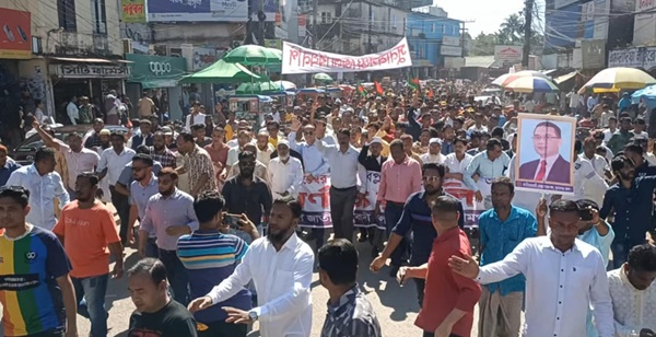 জাতীয় বিপ্লব ও সংহতি দিবস উপলক্ষে সুনামগঞ্জে বর্ণাঢ্য র্যালি ও সমাবেশ করেছে জেলা বিএনপি। বৃহস্পতিবার (৭ নভেম্বর) দুপুর পৌণে ১২ টায় পুরাতন বাসস্টেশন এলাকা থেকে একটি বর্ণাঢ্য র্যালি বের হয়ে
