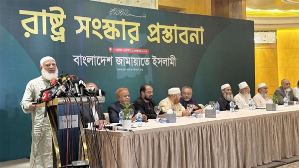 জামায়াতে ইসলামী রাষ্ট্র সংস্কারে দলের প্রস্তাব প্রকাশ করেছে। দলটি রাষ্ট্রপতি ও প্রধানমন্ত্রীর ক্ষমতার মধ্যে ভারসাম্য রাখা, পুলিশের জন্য স্বাধীন কমিশন গড়ে তোলাসহ বিভিন্ন প্রস্তাব দিয়েছে। এ সময় রাষ্ট্র সংস্কারে সেক্টর
