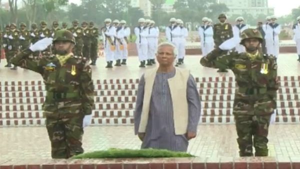 সাভারে জাতীয় স্মৃতিসৌধে মহান মুক্তিযুদ্ধে শহীদদের প্রতি শ্রদ্ধা নিবেদন করেছেন অন্তর্র্বতী সরকারের প্রধান উপদেষ্টা ড. মুহাম্মদ ইউনূস। শুক্রবার (৯ আগস্ট) সকাল ১০টার দিকে প্রধান উপদেষ্টা সাভারে জাতীয় স্মৃতিসৌধে মহান মুক্তিযুদ্ধে