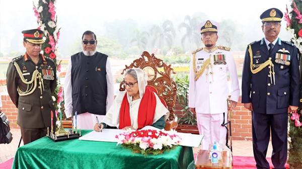 জাতীয় স্মৃতিসৌধ প্রাঙ্গণে রাখা দর্শনার্থী বইতে স্বাক্ষর করার সময় প্রধানমন্ত্রী শেখ হাসিনা লিখেছেন, ৭ জানুয়ারি অনুষ্ঠিত দ্বাদশ জাতীয় সংসদ নির্বাচনে জনগণের ভোটে বাংলাদেশ আওয়ামী লীগ বিজয়ী হয়েছে। এই বিজয় জনগণের