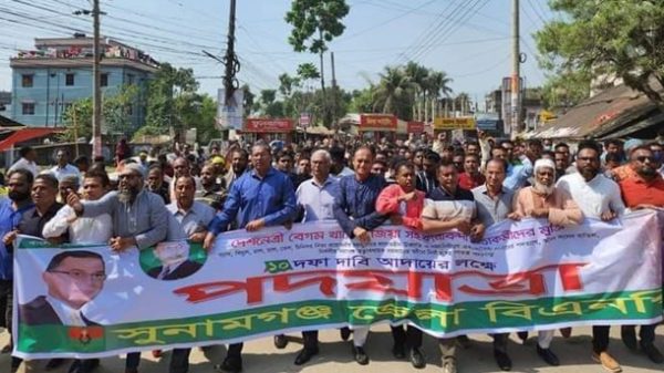 নির্দলীয় তত্ত্বাবধায়ক সরকারের অধীন নির্বাচনসহ গণতন্ত্র পুনরুদ্ধারে ১০ দফা দাবিতে সুনামগঞ্জে পদযাত্রা করেছে বিএনপি। শনিবার (২৫ ফেব্রুয়ারি) বেলা ১১টায় স্থানীয় পুরাতন বাসস্টেন্ড থেকে পদযাত্রা বের হয়ে হোসেন বখত চত্বরে গিয়ে