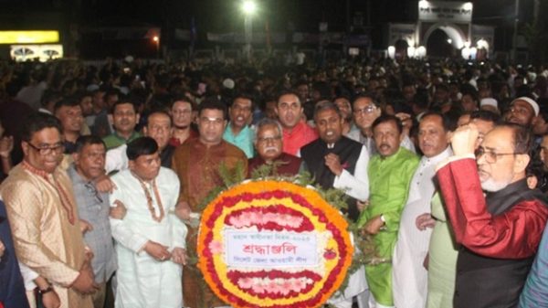 মহান স্বাধীনতা দিবস উপলক্ষ্যে সিলেট কেন্দ্রীয় শহীদ মিনারে বীর শহিদদের ফুলেল শ্রদ্ধা জানিয়েছেন জেলা আওয়ামী লীগ। রোববার (২৬ মার্চ) দিবসের প্রাক্কালে রাত ১২:০১ মিনিটে সিলেট কেন্দ্রীয় শহীদমিনারে জেলা আওয়ামী লীগের