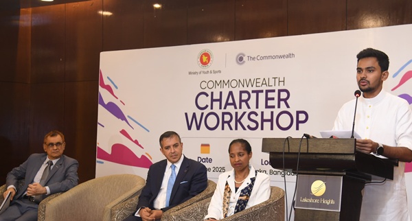 কমনওয়েলথ চার্টার কর্মশালার উদ্বোধন করা হয়েছে। সোমবার(২৩ জুন) ঢাকাস্থ লেক সোর হাইটস হোটেলের সম্মেলনকক্ষে কমনওয়েলথ এবং যুব ও ক্রীড়া মন্ত্রণালয়ের উদ্যোগে আয়োজিত কমনওয়েলথ সনদ বিষয়ক কর্মশালার এ কর্মশালার উদ্বোধন করেন,