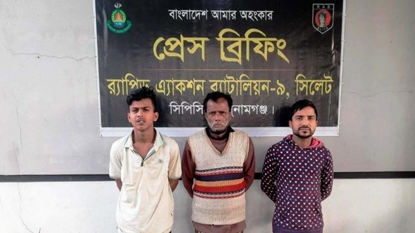 সুনামগঞ্জের দিরাই বাসস্ট্যান্ডে অভিযান চালিয়ে ৩৯ কেজি গাঁজা সহ তিনজনকে আটক করেছে র্যাব। আটককৃতরা হচ্ছে, হবিগঞ্জ জেলার চুনারুঘাট উপজেলার ইনাতাবদ গ্রামের মৃত শমরাজ মিয়ার ছেলে মো. নাসির মিয়া (৫০), এইক