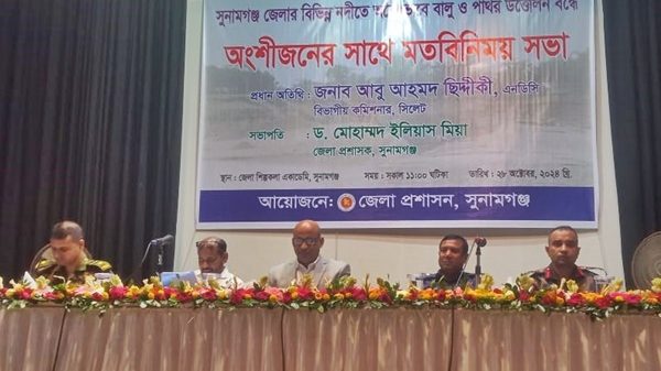 সিলেটের বিভাগীয় কমিশনার আবু আহমদ ছিদ্দীকী এনডিসি বলেছেন, বালু ও পাথর আমাদের জাতীয় সম্পাদক। এই সম্পকে যারা লুণ্ঠন করে তাদের বিরুদ্ধে আসমাদের ঐক্যবদ্ধভাবে লড়তে হবে। তিনি বলেন, এরা অত্যন্ত শাক্তিশালী