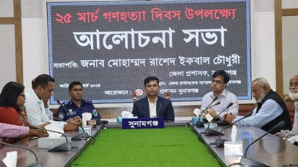 বধ্যভূমিতে পুস্পস্তবক অর্পণ ও আলোচনা সভার মধ্যদিয়ে সুনামগঞ্জে গণহত্যা দিবস পালিত হয়েছে। সোমবার (২৫ মার্চ) সকাল সাড়ে ১০টায় জেলা প্রশাসকের সম্মেলন কক্ষে দিবসটি উপ লক্ষে এক আলোচনা সভা অনুষ্ঠিত হয়।