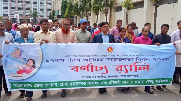 ‘সচেতনতা স্বীকৃতি মূল্যায়ন: শুধু বেঁচে থাকা থেকে সমৃদ্ধির পথে যাত্রা’ এ প্রতিপাদ্যকে সামনে রেখে সুনামগঞ্জে পালিত হয়েছে ১৭ তম বিশ্ব অটিজম সচেতনতা দিবস। মঙ্গলবার(২ এপ্রিল) সকাল সাড়ে ১০ টায় জেলা