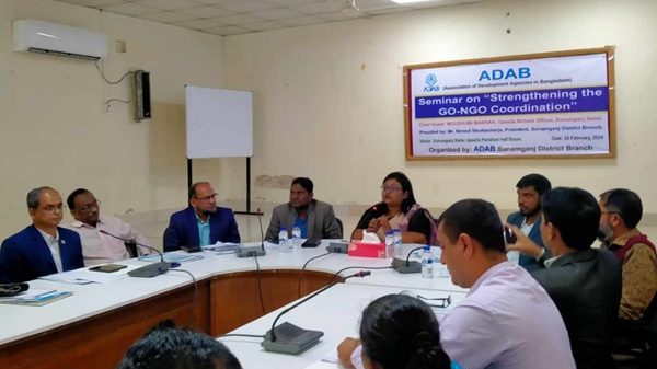 সুনামগঞ্জে টেকসই উন্নয়নে সরকারি-বেসরকারি উদ্যোগের সমন্বয় ও সহযোগিতা জোরদারকরণ শীর্ষক সেমিনার অনুষ্ঠিত হয়েছে। বুধবার (২৮ ফেব্রুয়ারি) বেলা সাড়ে ১১টায় সুনামগঞ্জ সদর পরিষদ উপজেলা মিলনায়তনে এসোসিয়েশন অব ডেভেলপমেন্ট এজেন্সি ইন বাংলাদেশ(এডাব)