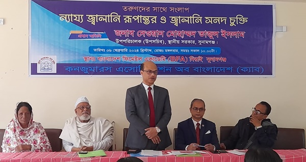 সুনামগঞ্জের দিরাইয়ে ন্যায্য জ্বালানি রূপান্তর ও জ্বালানি সনদ চুক্তি বিষয়ক দু’দিন ব্যাপী তরুণদের সংলাপ অনুষ্ঠিত হয়েছে। মঙ্গলবার (৬ ফেব্রুয়ারি) সকাল ১০ টায় দিরাইস্থ বাংলাদেশ ফিমেইল একাডেমি (বিএফএ)’র মিলনায়তনে কনজুমারস এসোসিয়েশন