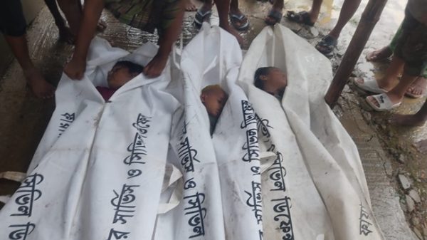 সুনামগঞ্জে নৌকা ডুবিতে তিন-ভাই বোনের মৃত্যু হয়েছে। নিহতরা হলেন, সদর উপজেলার গোবিন্দপুর গ্রামের মাজ বাড়ির সোহেল মিয়ার মেয়ে ফারজানা(১৩) ও মারজানা( ৮) ও ছেলে রবিন(৪)। রোববার(২ জুলাই) দুপুর সাড়ে ১২টার