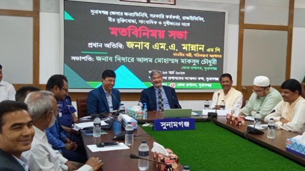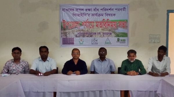 হাওরের ফসল রক্ষা বাঁধ পরিদর্শন পরবর্তী পিআইসির কার্যক্রম বিষয়ক মতবিনিময় সভা অনুষ্ঠিত হয়েছে। বৃহস্পতিবার (২৩ মার্চ) দুপুরে সুনামগঞ্জ শহরের কাজির পয়েন্টস্থ একটি অভিজাত গেস্টহাউজের কনফারেন্স হলে সুনামগঞ্জ জনকল্যাণ সংস্থা(সুজন), পল্লী