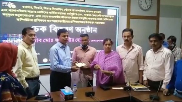 সুনামগঞ্জে ক্যান্সারসহ নানা দুরারোগ্য ব্যাধিতে আক্রান্তদের আর্থিক সহায়তা কর্মসূচির চেক, সাধারণ স্বেচ্ছাসেবী সংগঠনসমূহের অনুকূলে চেক এবং বেদে জনগোষ্ঠীর জীবনমান উন্নয়ন কর্মসূচির আওতায় সেলাই মেশিন ওকম্পিউটার প্রশিক্ষিতদের উপকরণ সহায়তার চেক বিতরণ