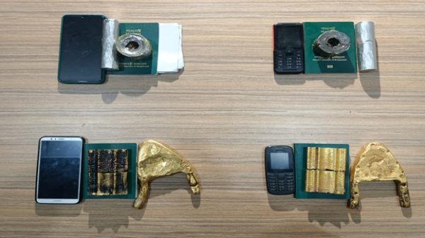 সিলেট এমএজি ওসমানী আন্তর্জাতিক বিমানবন্দর থেকে ১১ কেজি ২২০ গ্রাম ওজনের স্বণস্ব চার যাত্রীকে আটক করেছে কাস্টমস কর্তৃপক্ষ। উদ্ধারকৃত স্বর্ণের আনুমানিক মূল্য ৭ কোটি টাকা। সোমবার সকাল ৯টায় বাংলাদেশে বিমানের