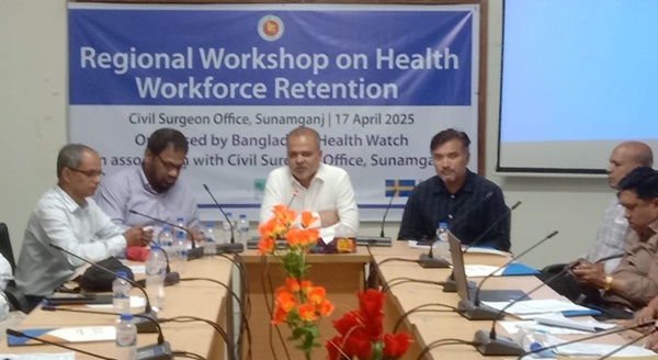 সুনামগঞ্জে উপজেলা স্বাস্থ্য ও পরিবার পরিকল্পনা ও মেডিকেল অফিসারদের স্বাস্থ্যকর্মী ধরে রাখা বিষয়ক আঞ্চলিক কর্মশালা অনুষ্ঠিত হয়েছে। বৃহস্পতিবার (১৭ এপ্রিল) দুপুর আড়াইটায় জেলা ইপিআই ভবন মিলনায়তনে বাংলাদেশ হেল্থ ওয়াচের উদ্যোগে