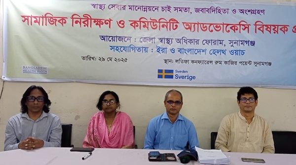স্বাস্থ্য সেবার মানোন্নয়নে চাই সমতা,জবাবদিহিতা ও অংশ গ্রহন’ এ শ্লোগানকে সামনে রেখে সুনামগঞ্জে সামাজিক নিরীক্ষণ ও কমিউিনিটি অ্যাডভোকেসি বিষয়ক দিনব্যাপী প্রশিক্ষণ অনুষ্ঠিত হয়েছে। বৃহস্পতিবার (২৯ মে) সকাল ১০ টায় সুনামগঞ্জ