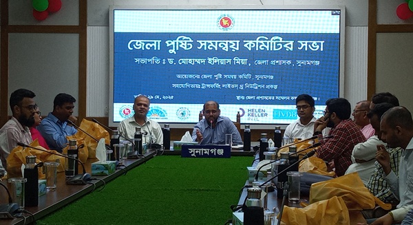 সুনামগঞ্জে জেলা পুষ্টি কমিটির সভা অনুষ্ঠিত হয়েছে। বৃহস্পতিবার (২৯ মে) দুপুর সাড়ে ১২ টায় সুনামগঞ্জ জেলা প্রশাসকের সস্মেলন কক্ষে জেলা পুষ্টি সমন্বয় কমিটির উদ্যদোগে ও ট্রান্সফর্মিং লাইভস্ ধ্র নিউট্রিশন প্রকল্পের