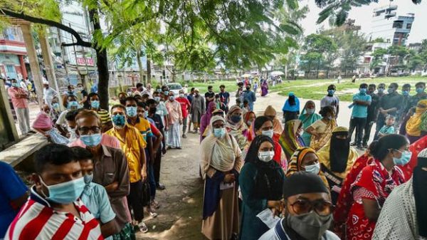 করোনার প্রথম ডোজ টিকাদান কর্মসূচি আজ (২৬ ফেব্রুয়ারি) শেষ হচ্ছে এমন খবরে কেন্দ্রে কেন্দ্রে টিকা নিতে আসা মানুষের ঢল নেমেছে। টিকাপ্রত্যাশী অসংখ্য নারী-পুরুষ গাদাগাদি করে লাইনে দাঁড়িয়ে টিকার জন্য অপেক্ষা